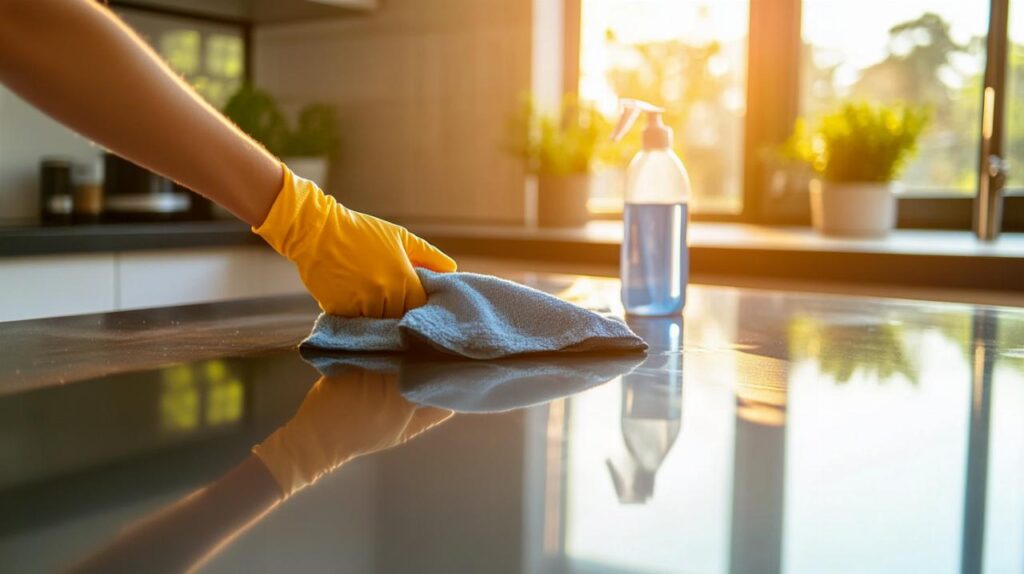 Le nettoyage préalable constitue une étape absolument indispensable avant toute désinfection à l’eau de Javel. Cette phase initiale vise à éliminer les salissures visibles, les graisses et les résidus organiques qui forment une barrière physique empêchant le désinfectant d’atteindre les micro-organismes. Il convient d’utiliser un détergent adapté au type de surface, puis de rincer soigneusement à l’eau claire pour éliminer toute trace de produit nettoyant. Cette préparation permet au chlore actif de l’eau de Javel d’agir directement sur les bactéries, virus, champignons et spores sans être neutralisé par les matières organiques résiduelles.